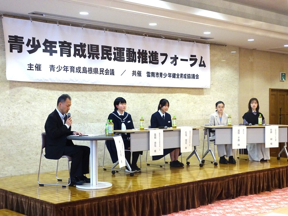 2月1日(日)雲南市木次経済文化会館チェリヴァホールを会場に、令和7年度 青少年育成県民運動推進フォーラムを開催しました。約100名が一堂に会し「地域で育む青少年の社会参画」について考えました。